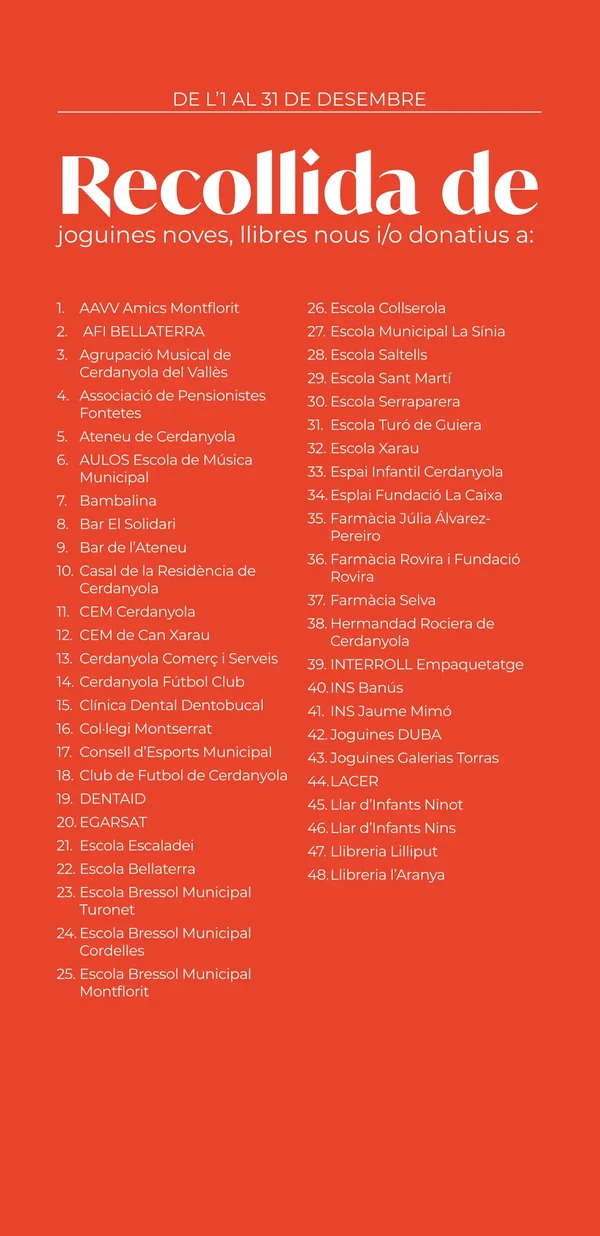 L'objectiu de la campanya és aconseguir que tots els infants de Cerdanyola del Vallès (fins a 12 anys) puguin tenir joguines i llibres nous la nit de reis.