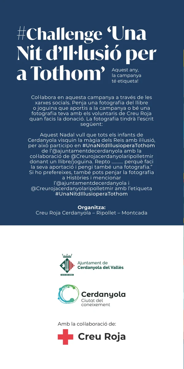 L'Ajuntament de Cerdanyola del Vallès amb la col·laboració de la Creu Roja Cerdanyola-Ripollet-Montcada, impulsa la campanya 'Una nit d'il·lusió per a tothom' de 2026.